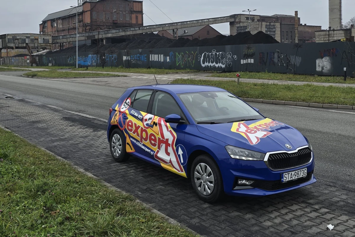 Skoda Fabia dokładnie taka jak na państwowym egzaminie w WORD Bytom. Skoda służy do nauki jazdy na kategorię B.